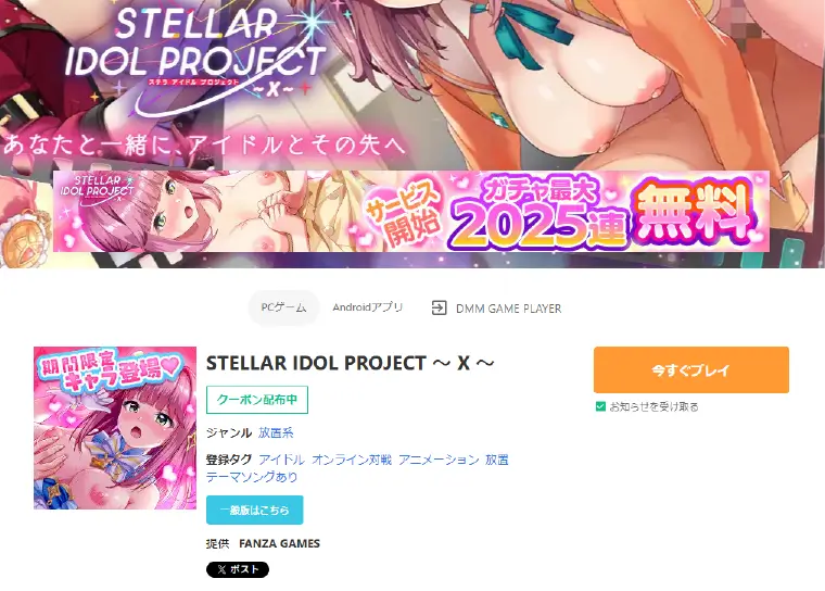 - 在 DMM GAME PLAYER 右上角搜尋「stellar idol project x」