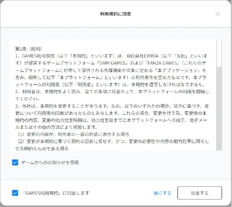 - 勾選「GAMES利用規約に同意する」(同意使用條款)