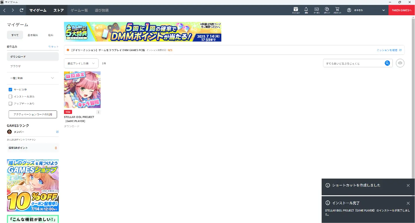 - 選擇右邊的「DMM GAME PLAYERインストール(Windows版)」下載安裝程式
