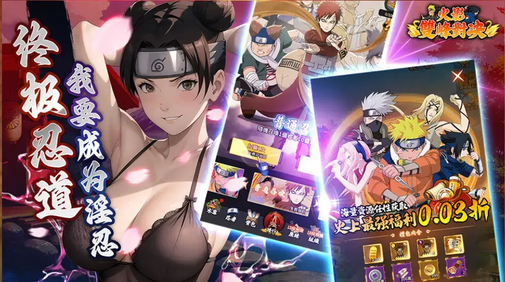 《火影 雙峰對決》是一款結合「 火影忍者IP 」與 成人向內容 的卡牌角色扮演手遊。